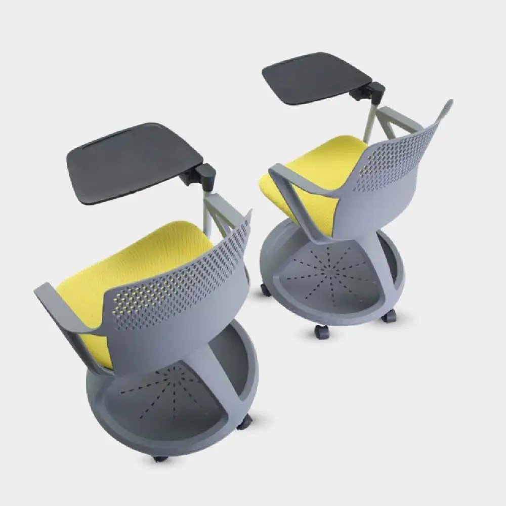 swivel writing tablet, storage tray, and mesh back.